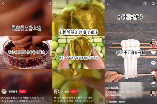 视频中,一个机械女声不带丝毫感情地讲述着一段跌宕起伏的爱情故事,故事情节之波澜起伏、千回百转与机器AI声形成了十分鲜明的对比,再加上制作花式面点的解压视频画面,整个视频元素略显混乱。