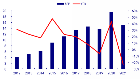 2021年,比亚迪2021年单车均价为15.2万元,已经超越了大众的14.78万。