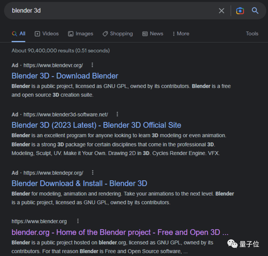 著名3D创作套件Blender,搜索时甚至被三个假广告盖过,网址也挺像那么一回事: