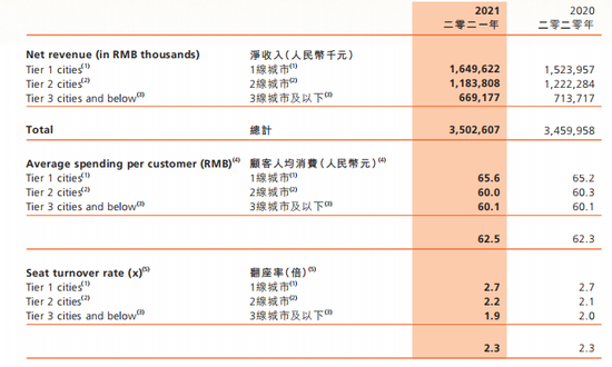 财报中的另一组数据也可以反应消费者的变化,上市前后呷哺呷哺的翻台率一直在下降。2011年,呷哺呷哺的翻台率是超高的4.7,2021年已降到了2.3,而同期海底捞的翻台率还维持在3.0。
