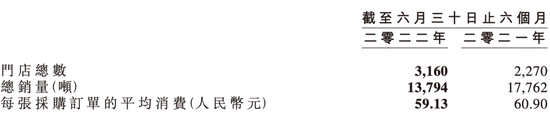 可以看到,2018年、2019年主要发力自营模式的周黑鸭,单店销量分别为29.31吨、27.56吨,2021年这一数据只有14.7吨,2022年上半年进一步下滑为4.37吨。