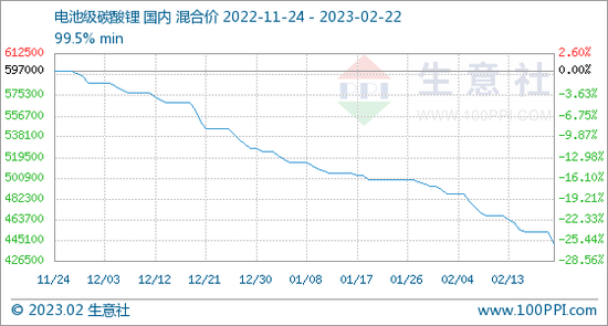 电池级碳酸锂近两年价格走势,图源生意社官网