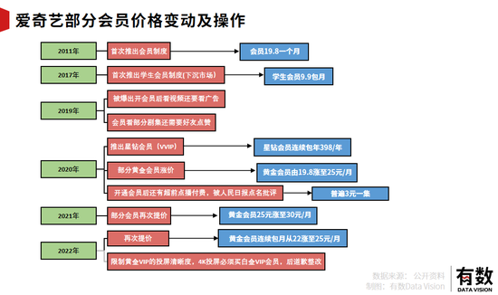 第三个动作是涨价。多年发展下来,长视频平台的月活和会员数量其实已经到天花板,三大家无论如何努力,都长期维持在1个亿左右,付费率很长时间没办法突破,只能从会员费上想办法。