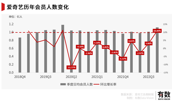 从全年的视角来看,2022年爱奇艺会员收入增长约10亿元,同比增幅约6%,这是爱奇艺去年唯一的增长来源。
