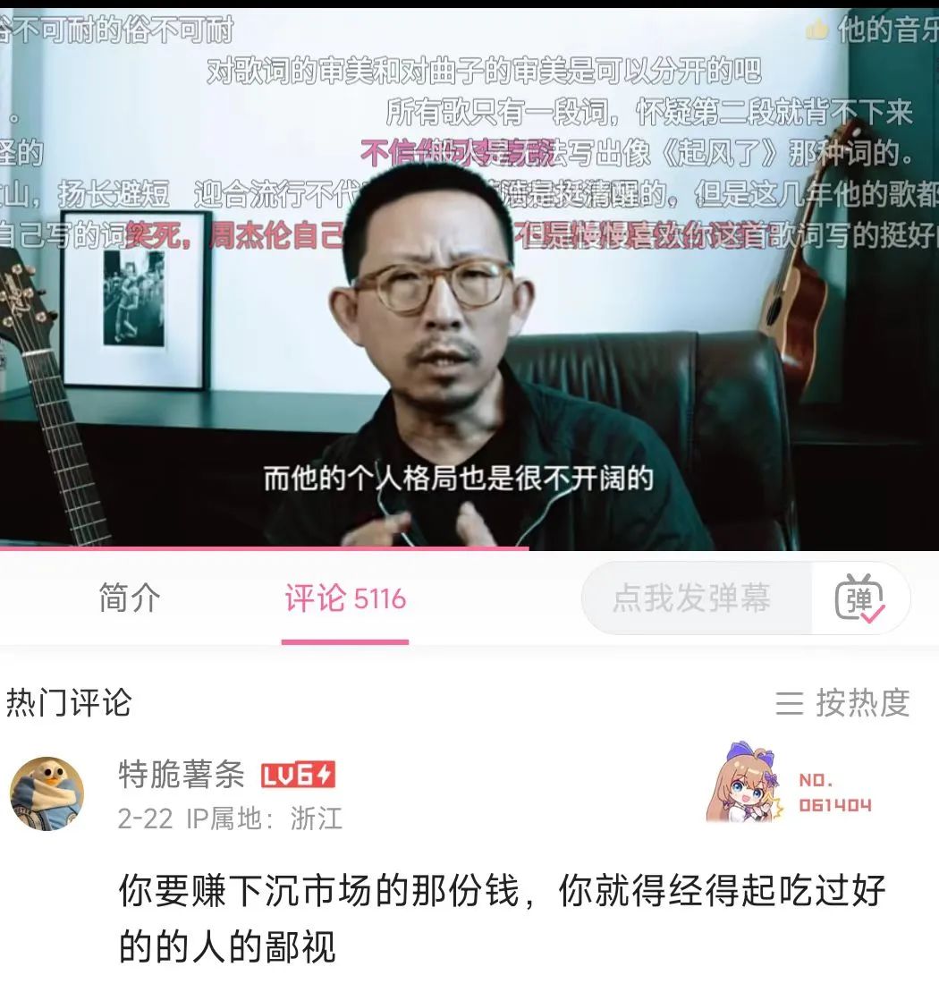 丁太升在锐评视频里同样提到了关于音乐人向上突破的问题,他认为李荣浩这样第一梯队的歌手不能也不该对市场过于“谄媚”,而应不断向上突破,这种迎合下沉市场的“聪明”并不可取。