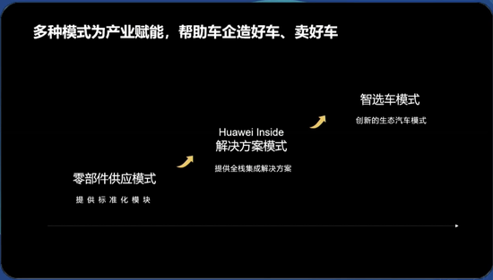 华为布局汽车业务之初,是想成为“智能汽车领域零部件供应商”,成为类似博世、大陆一样的存在。但由于华为更关注智能化领域,算法、云、芯片都属于偏“软”的业务,很难像刹车、转向、制动等零部件可以标准化大规模生产,而是需要与车企深度联合、持续OTA升级,于是与车企更深度绑定的HI模式诞生。