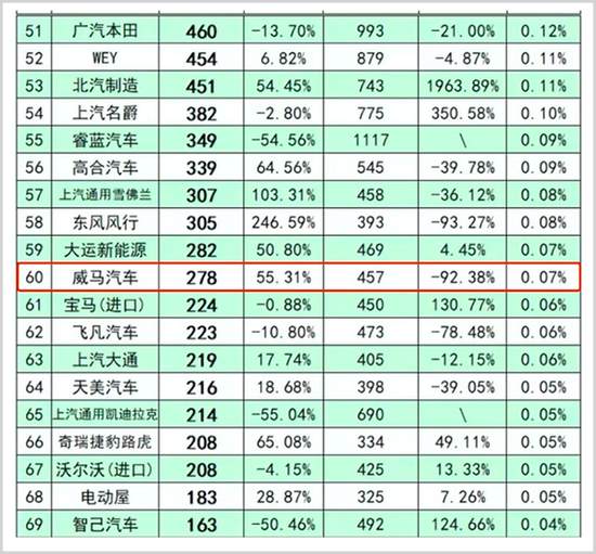 可到了2022年,威马在上行的行业大势中,逆势下跌,全年销量29327辆,同比下降33.6%。被哪吒和埃安拉开了十几万,甚至二十多万辆的差距。