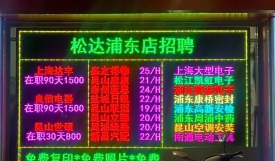 “别说返费了,几个月前想来昌硕上班还得倒贴钱。”当地的一位招聘中介人员告诉《IT时报》记者,目前上海电子大厂普遍不缺人,曾经最高过万的返费到如今只有三四百元,“现在效益不好,昌硕招的人很多都被调到了昆山,很多年轻人来问完情况都回去了,因为没工作。”