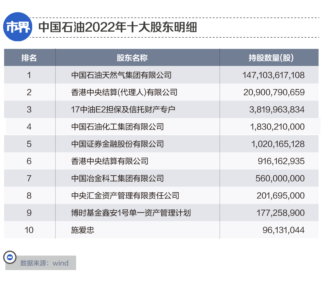 值得一提的是,在中国石油的十大股东之列,甚至罕见地出现了一个自然人的名字。目前,身为中国石油第十大股东的施爱忠,于2022年第二季度大规模进场,并在随后两个季度不断增持。最新公布数据显示,截至2022年年底,施爱忠持有中国石油9613万股股份,当前价值接近7亿元。