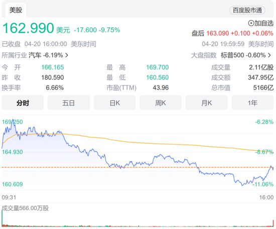 截止发稿前,特斯拉股票报162.99美元/股,总市值5166亿美元。