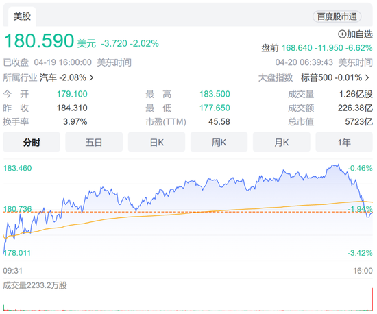 财报发布当天,特斯拉收盘价报180.59美元,最高183.5美元,最低177.65美元,成交量1.26亿股,总市值5723亿美元。