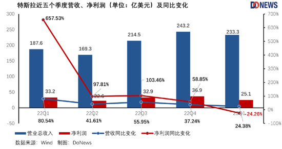 4月20日,特斯拉发布了2023年第一季度财报,总收入约233.3亿美元,同比增长24.38%;净利润约25.13亿美元,同比下滑超24%,低于市场预期。
