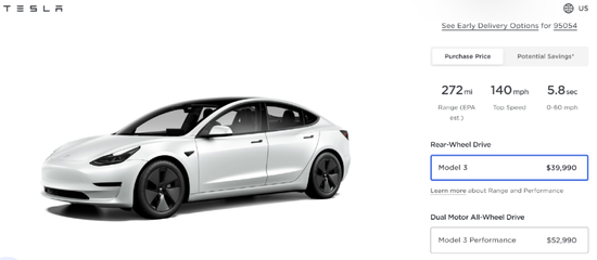但就在财报发布前一天的4月19日,特斯拉美国官网显示,包括Model 3、Model Y在内的多款车型再次降价,幅度在4.7%-6%左右。其中,Model 3后驱版售价由4.199万美元下调2000美元至3.999万美元,标志着特斯拉汽车的最低售价正式跌破4万美元。
