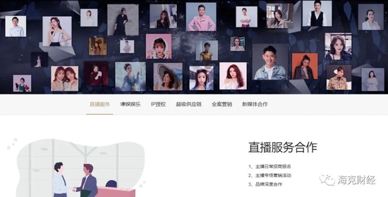 供应链业务之外,谦寻官网的业务介绍栏还罗列着“谦娱娱乐”“IP授权”“全案营销”“新媒体合作”几项业务,究其服务本质,主要是将直播间的流量价值进行多渠道变现。