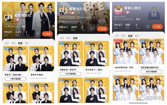 如大众所知,自2021年12月20日薇娅受查致歉及相关账号一夜之间被全网封停以来,谦寻已在淘宝、抖音等平台陆续上线了多个其他称谓的直播间。确切说,自2022年2月12日在淘宝开出风波后第一个直播间蜜蜂惊喜社开始,谦寻在淘宝、抖音等平台共上线了5个较为知名的直播间,它们分别是蜜蜂惊喜社、蜜蜂欢乐社、蜜蜂心愿社、琦儿Leo、海豚惊喜社,其中前三者多被合称为蜜蜂三社。