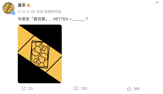 5月17日,在#FENDI喜茶联名#的词条冲上微博热搜数小时后,喜茶官方账号的宣传“姗姗来迟”,称本次联名将携手“FENDI‘hand in hand‘匠心艺术展”带来‘hand in hand茶室’及具有中国彝族特色的限定产品体验,并在喜茶大陆门店特别呈现“FENDI喜悦黄”特调。