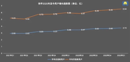 这带来的结果是,快手亏损缩窄、整体盈利,但用户规模涨得慢了。今年一季度,快手平均日活跃用户同比增长8.3%达3.743亿,平均月活跃用户同比增长9.4%达6.544亿。但慢于2022同期的15.0%的日活增速和17.3%的月活增速。
