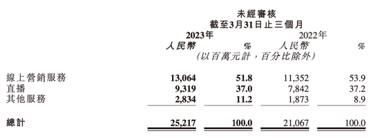 随着快手直播进入平稳增长阶段。其直播业务营收占比正在不断下降,从2020年Q3的51.8%降至2023年Q1的37%。今年一季度,该业务收入达93.2亿元,同比上涨18.8%。