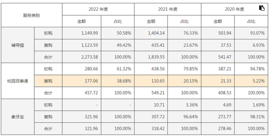 不过值得注意的是,2022年,辅导猫新客户初购金额较2021年已经出现下降,之所以能维持增长,完全靠公司老客户的复购。