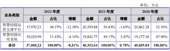 对于公司智慧校园运营支撑平台收入减少,金智教育招股书表示,受宏观经济条件影响,一方面高校教育经费优先满足线上教学需求,另外一方面,公司智慧校园运营支撑平台新增订单较少。