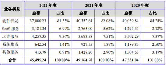 数据显示,2020年至2022年,公司SaaS服务营业收入分别为1294.54万元、2763.00万元、3181.34万元。