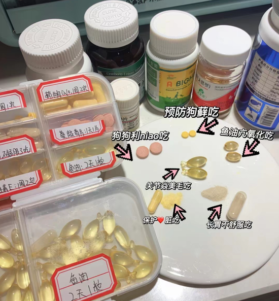 美毛的、补钙的、呵护关节的、维持肠道健康的……对于小楠来说,比起动辄几千上万的体检费、治病钱,每个月花几百块钱为自己的爱宠买保健品,似乎是更加经济的养宠方式。