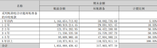 细分来看,应收账款的坏账准备提及比例最高的部分,主要集中于3-4年、4-5年及5年以上的应收账款。