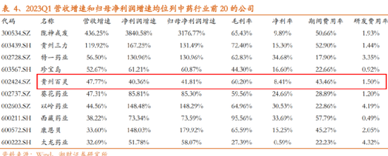 实际上从上图可以看出,如果说贵州百灵的上述营收增速勉强够“撑场”的话,那么净利润增速、归母净利润增速以及净利率就可以说是垫底的了。