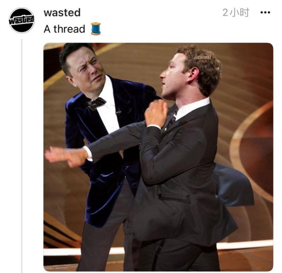 这件事本来也是由Threads引发的。有网友发布了Meta正在计划上线推特竞品Threads的消息,马斯克跑去阴阳怪气,说“我敢肯定地球已经等不及完全被扎克控制了”。另一位网友提醒他小心点,小扎是有点柔术在身上的,马斯克表示笼中格斗可以啊,咱奉陪。