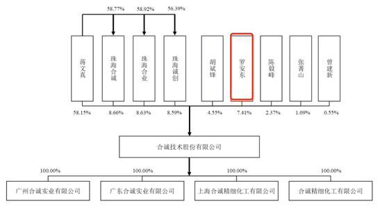 此外,为落实员工激励计划事宜,2020年,蒋文真、罗安东作为公司当时第一、第二大股东共同设立了三家合伙企业作为持股平台。罗安东提出希望在合诚技术提交上市申请材料前,将其通过三家合伙企业间接持有的合诚技术1.6960%的股份调整为直接持股。此前,合诚技术与罗安东未就持股方式调整达成一致。
