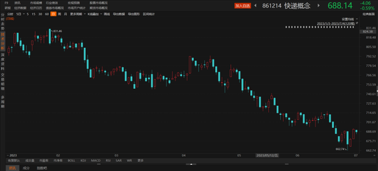 自今年开年以来,Choice中的快递板块在半年中一路漫漫阴跌,未出现较为有力的反弹,截至7月4日收盘,行业指数已在半年的时间内跌去14%。