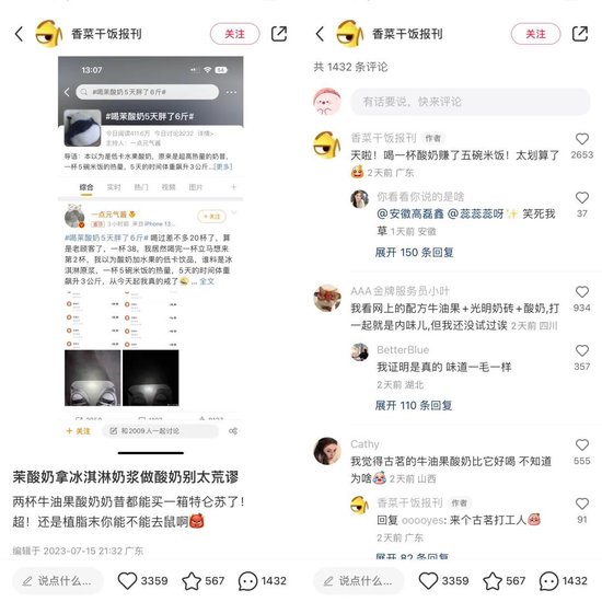 在“干净的圈子,规律的生活”这个话题之下,不少网友用茉酸奶玩起了梗。“喝最爱的茉酸奶,每天清晨都要来一杯(35一杯),不是炫富,只是为数不多的爱好”,“我这样高品质的生活源于每天一杯精心挑选的茉酸奶(奶牛场现挤的,没用优惠券,你知道的要将近三十块钱)”……