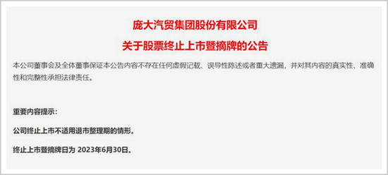2023年6月30日,上交所正式对庞大汽贸集团股份有限公司(下称庞大集团)股票予以摘牌,公司股票终止上市。