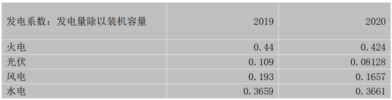 首先,基于上述论调的投资者忽视了,火电、水电、风电与太阳能发电之间装机容量与实际发电的区别。我们通过以下表格来做分析。以下各种能源单位装机量与发电量系数之间的差异: