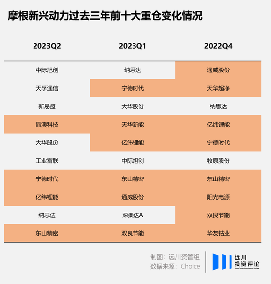以摩根新兴动力为例,其前十大重仓股中在2022年年底半数以上为新能源行业相关个股,之后伴随着人工智能的兴起,新能源含量也是在日渐下滑。他在季报说道,「对于人工智能的发展,我们投入了较大的力量去跟踪和研究,并重点投资了能够参与到全球产业链的优质公司,创造了较好的超额收益。」