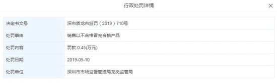 天眼查显示,品胜电子曾因为产品质量问题被监管部门处罚。2018年12月,公司因为产品质量违法行为被深圳市市场监督管理局龙岗局罚款1.8万元,没收违法所得和财物;2019年9月,品胜电子以不合格产品冒充合格产品销售被深圳市市场监督管理局龙岗局罚款4500元。