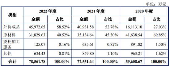 3C电子行业本身不是技术门槛很高的行业,行业内大部分公司产品都是外购成品。2022年,公司对外采购金额为7.86亿元,外协成品采购金额高达4.60亿元,占比为58.52%。