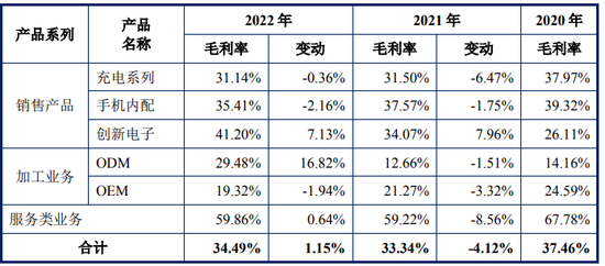 2020年创新电子业务毛利率为26.11%,到2022年大幅攀升至41.20%,成为品胜电子综合毛利率维持稳定的重要因素。