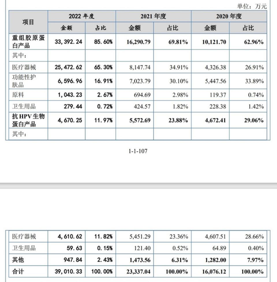 根据招股书,2021年,锦波生物重组人源化胶原蛋白植入剂销售额2842万元,到2022年提升至1.17亿元,同比增长超过300%。