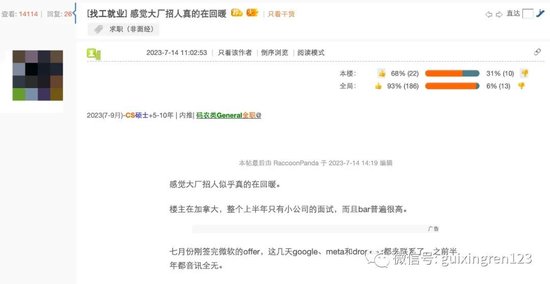 看起来形势一片大好?但也有人出来反对:哪有这么乐观,公司为了不影响股价,大规模裁员是没了,小型裁员可时不时还会悄咪咪来一波;应届生还是一样艰难,投了大半年简历石沉大海,即便实习拿到return offer,等候名单上还有几百号人。回暖是认真的吗,怎么还没暖到我这儿?