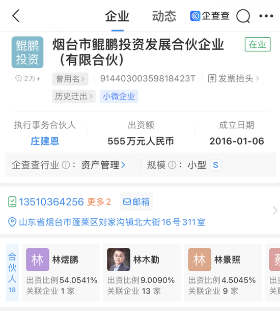 另据企查查显示,鲲鹏投资由林煜鹏、林木勤分别持股54.0541%、9.009%,林煜鹏为林木勤之子,与此同时鲲鹏投资的有限合伙人陈焕明为陈惠玲的兄弟,公司第三大股东林景照则是东鹏饮料的经销商。