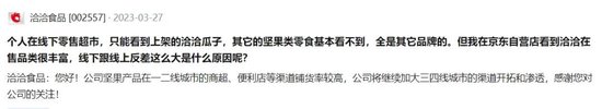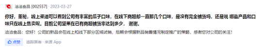 在投资者平台上,有人发问:“线上渠道可以看到公司有丰富的瓜子口味,在线下商超却一直那几个口味,是没有完全铺货吗?”