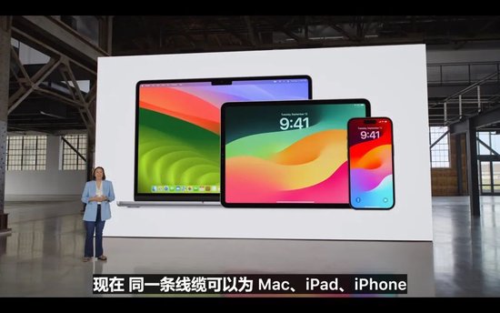 此外,如市场传闻,这次的iPhone 15系列终于换了Type-C接口,和Mac、iPad等产品实现了接口统一。苹果表示,现在一根充电线就可以为多种苹果设备充电了。而终于与安卓统一了接口,也受到了市场好评。