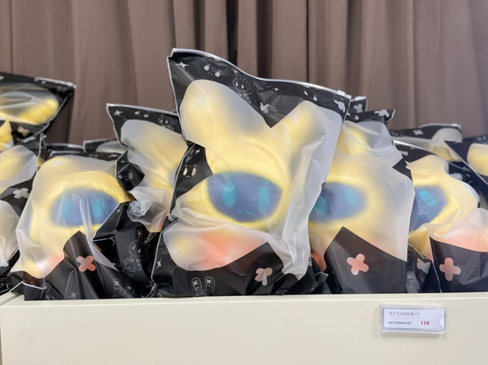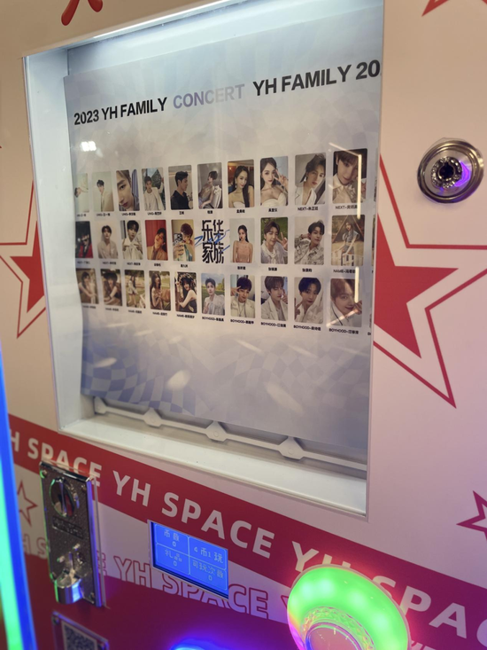 与视觉上的空荡对应的,是旁边的抓娃娃机却人头攒动:5元一次,也许你就能抓到皮卡丘,或者是毕雯珺、黄明昊的棉花娃娃。
