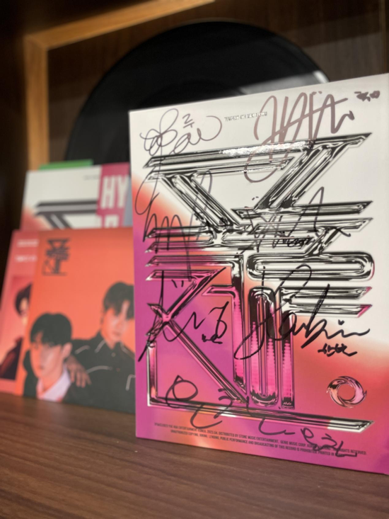 有些让人意想不到的是,YH SPACE不仅卖自己家艺人的周边,还专门开设了区域,售卖韩国组合NCT、 aspea、Stray Kids的专辑,前两者属于韩国SM公司,后者则属于韩国JYP;这片区域还同时陈列着黄征、周笔畅、胡彦斌、阿杜、安又琪亲签专辑,这几位的共同特点是和乐华有过合作。