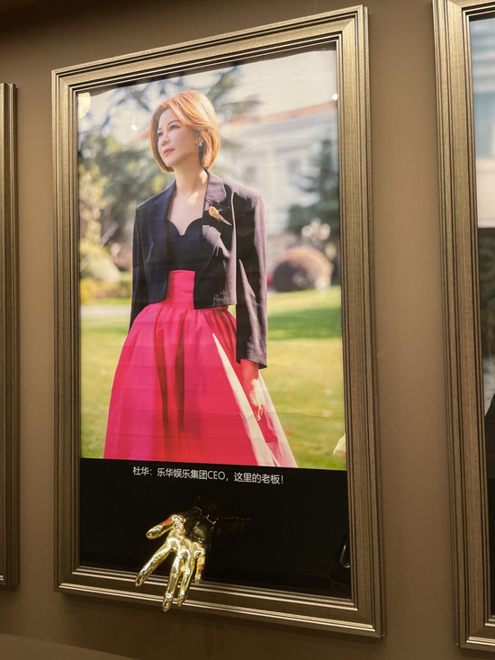 但在这其中,手模上留下掌纹最多的,还是杜华。在乐华家族全体成员合照的对面,杜华互动区域居于正中,照片上赫然写着,“杜华:乐华娱乐集团CEO,这里的老板!”