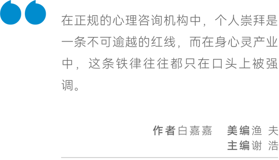 在正规的心理咨询机构中,个人崇拜是一条不可逾越的红线,它甚至禁止心理咨询师和客户在工作关系之外产生任何连接。一旦出现苗头,心理咨询师就会建议客户更换咨询师。因为个人崇拜全然无助于受访者形成独立、健康的个体意识。