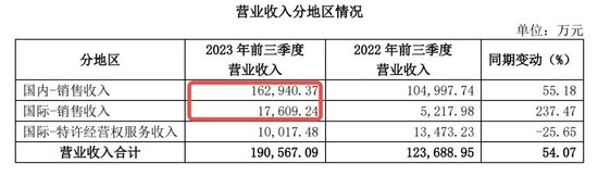 2022年前三季度,国内市场销售收入10.5亿元,同比下滑55%。2023年前三季度,国内市场销售收入虽然较去年同期增长了55%,但仍较2021年同期下滑了30%。
