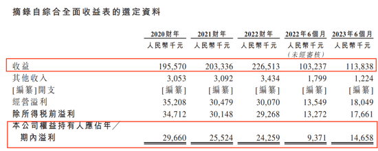 招股书数据显示,2020财年至2022财年,公司实现收益1.96亿元、2.03亿元、2.27亿元;溢利2966万元、2552.4万元、2425.9万元,净利润连年下滑。