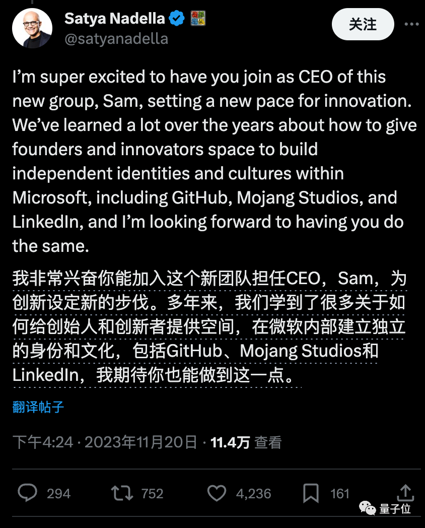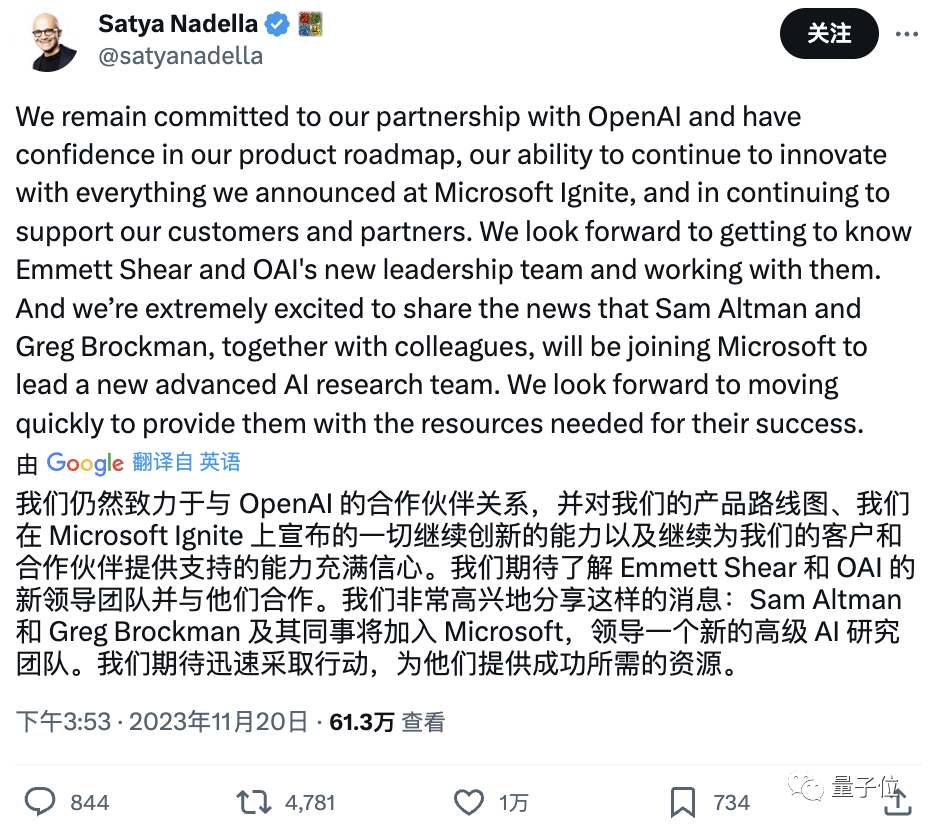 是啊,如网友所说,现在的微软可是一边作为OpenAI最大的投资人,一边坐拥其前CEO——以及所有想跟着他离开的OpenAI员工们(微软承诺一并收入),强大得让人不敢想象。